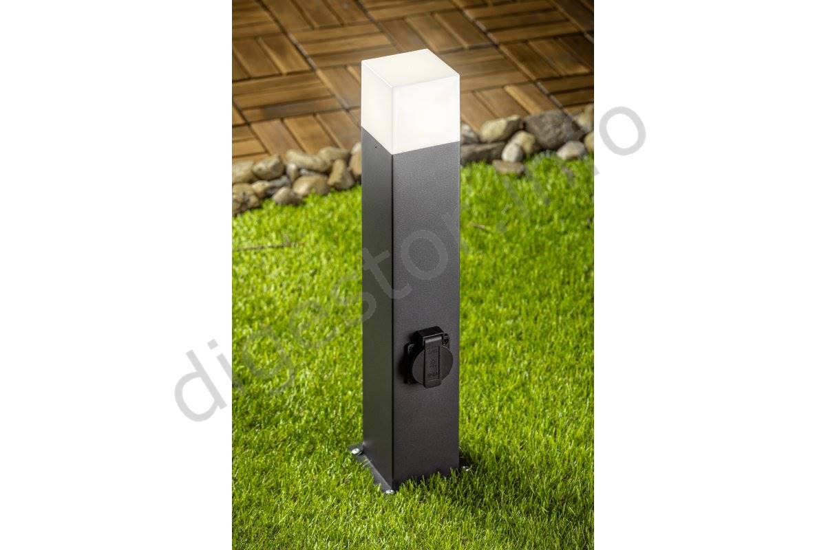 Záhradné Svietidlo Stĺpik LARGO-P 50 Grafit max 15W E27 + Zásuvka 230V IP44,