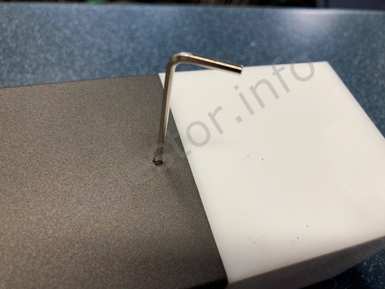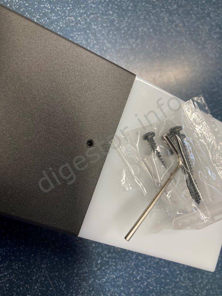 Balenie obsahuje okrem hmoždiniek a vrutov tiež imbusový kľúč k otvoreniu plastového krytu.